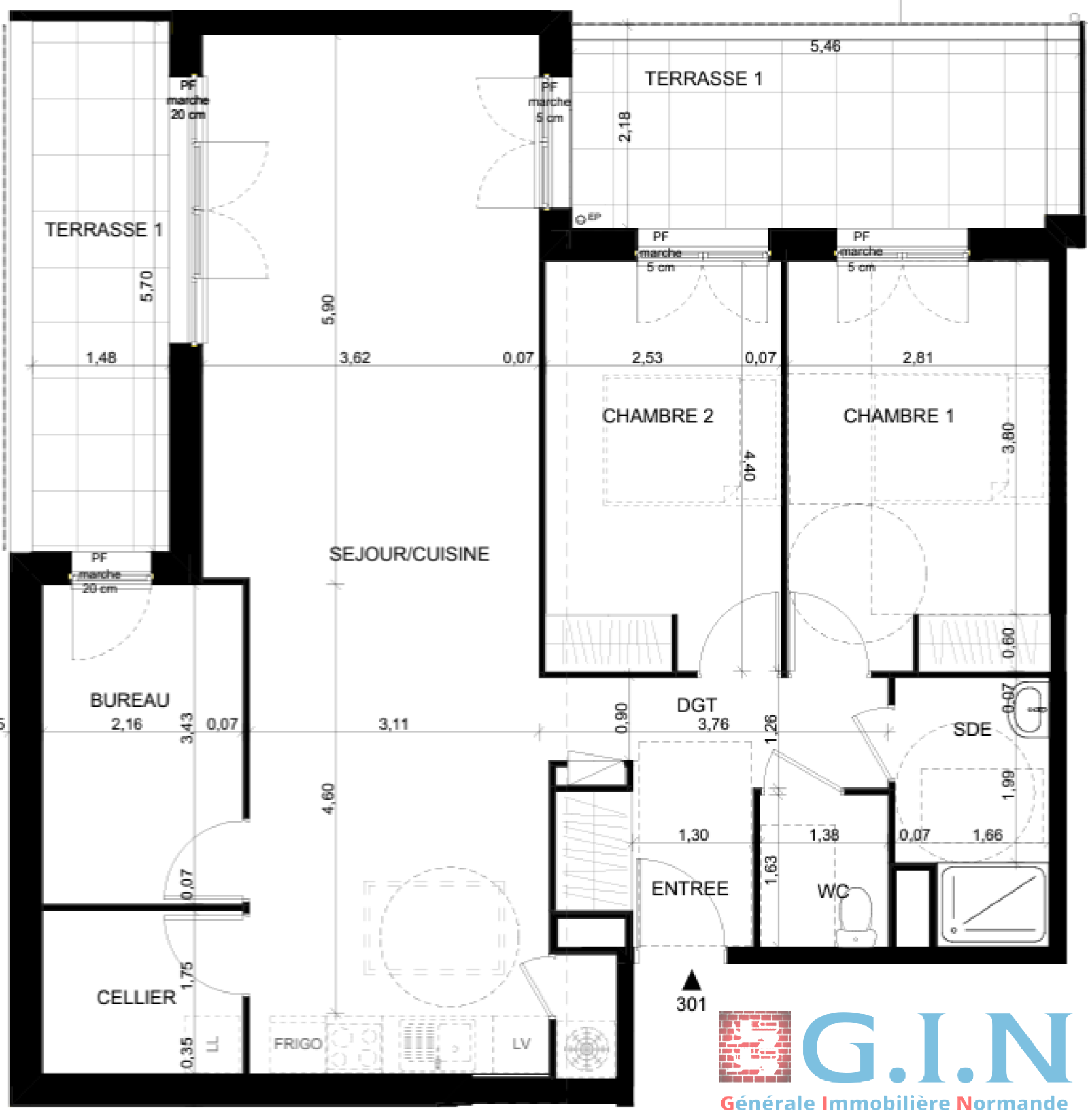 Le plus : Deux terrasses d'une superficie de 23,21m²