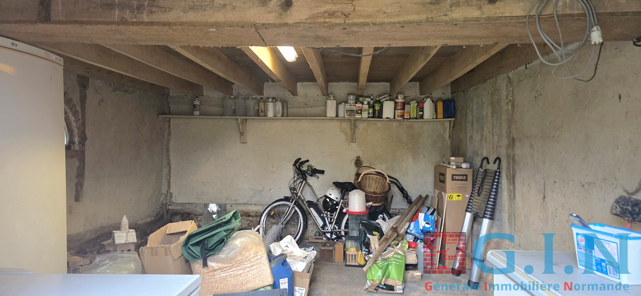 Garage accolé à la maison avec grenier en partie haute et possibilté d'aménagement du rez de chaussée en chambre ou autre annexe souhaitée avec accès par le salon.