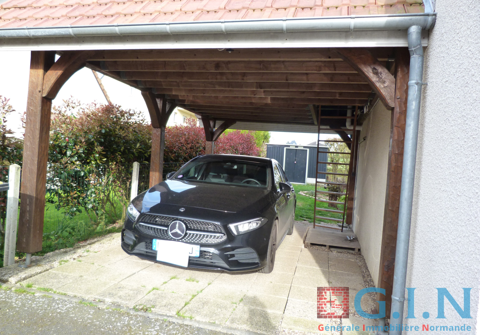 Garage avec lingerie /chaufferie + charreterie/carport avec grenier au-dessus accessible par un escalier