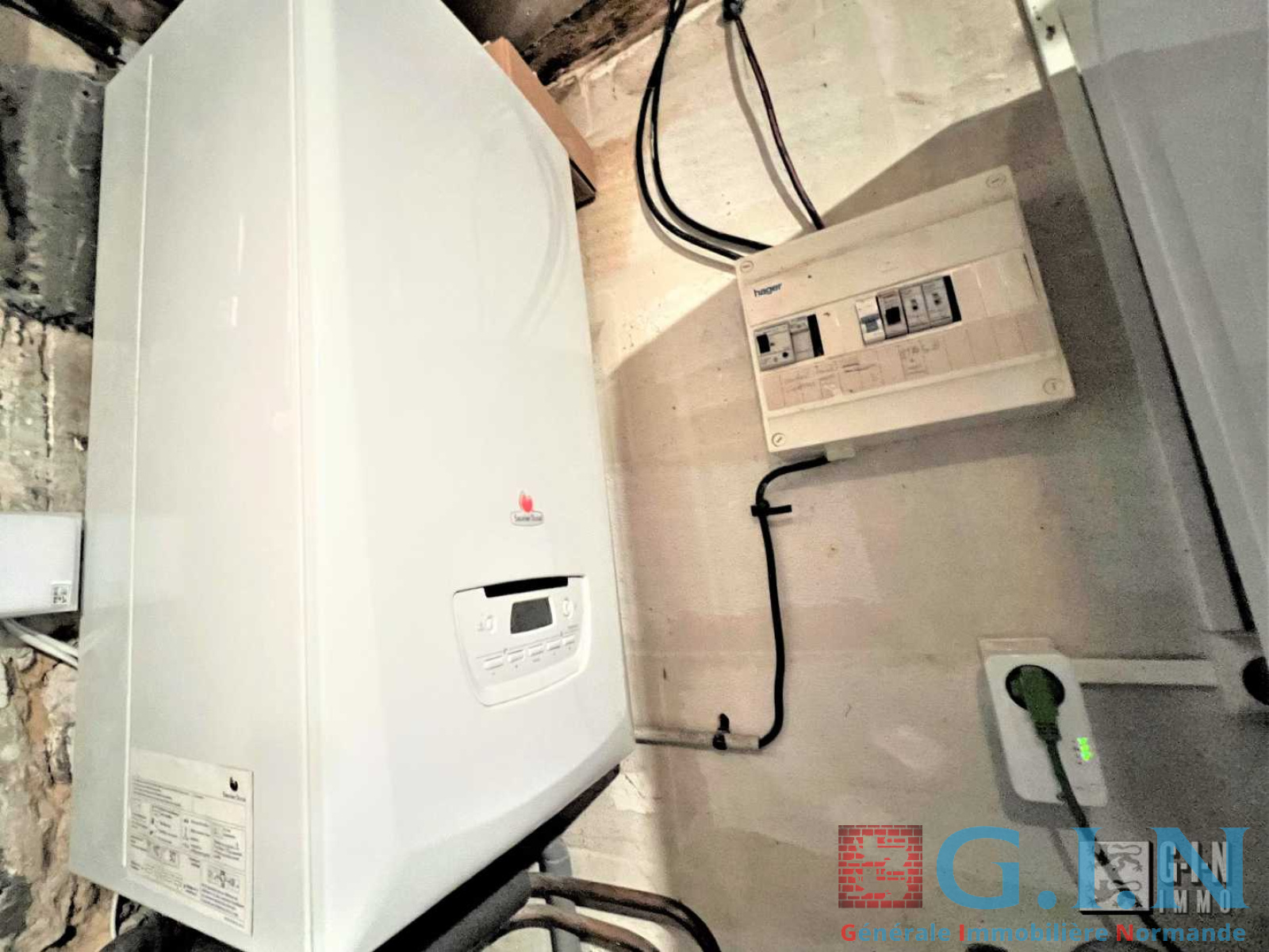 Rez-de-chaussée : Entrée avec rangement, Séjour d'une superficie de 41m² avec triple exposition et accès sur terrasse pierre et bois (cheminée insert), cuisine aménagée avec coin repas, lingerie pouvant faire l'objet d'un aménagement en salle de bains, wc indépendant, chaufferie / atelier / rangement, accès sur grenier au dessus de la chaufferie