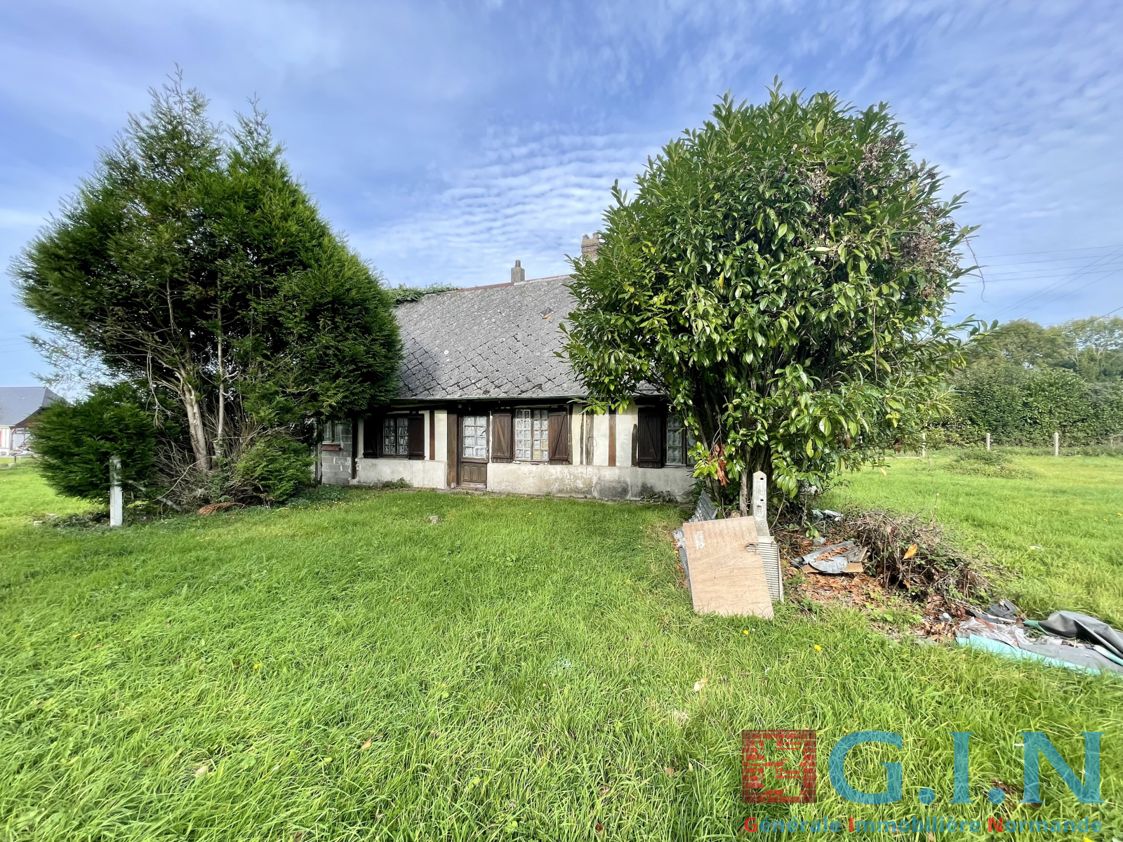 A moins de 15 mn de Pont-Audemer, proche des axes autoroutiers, une maison à rénover sur terrain d'environ 1600m².
