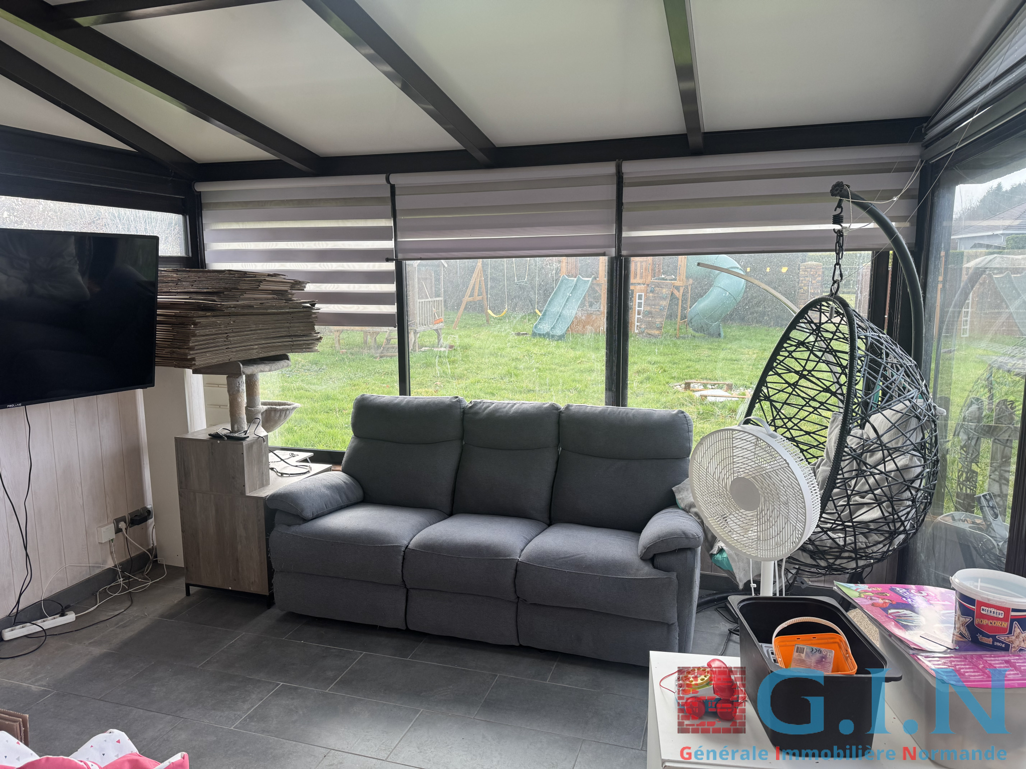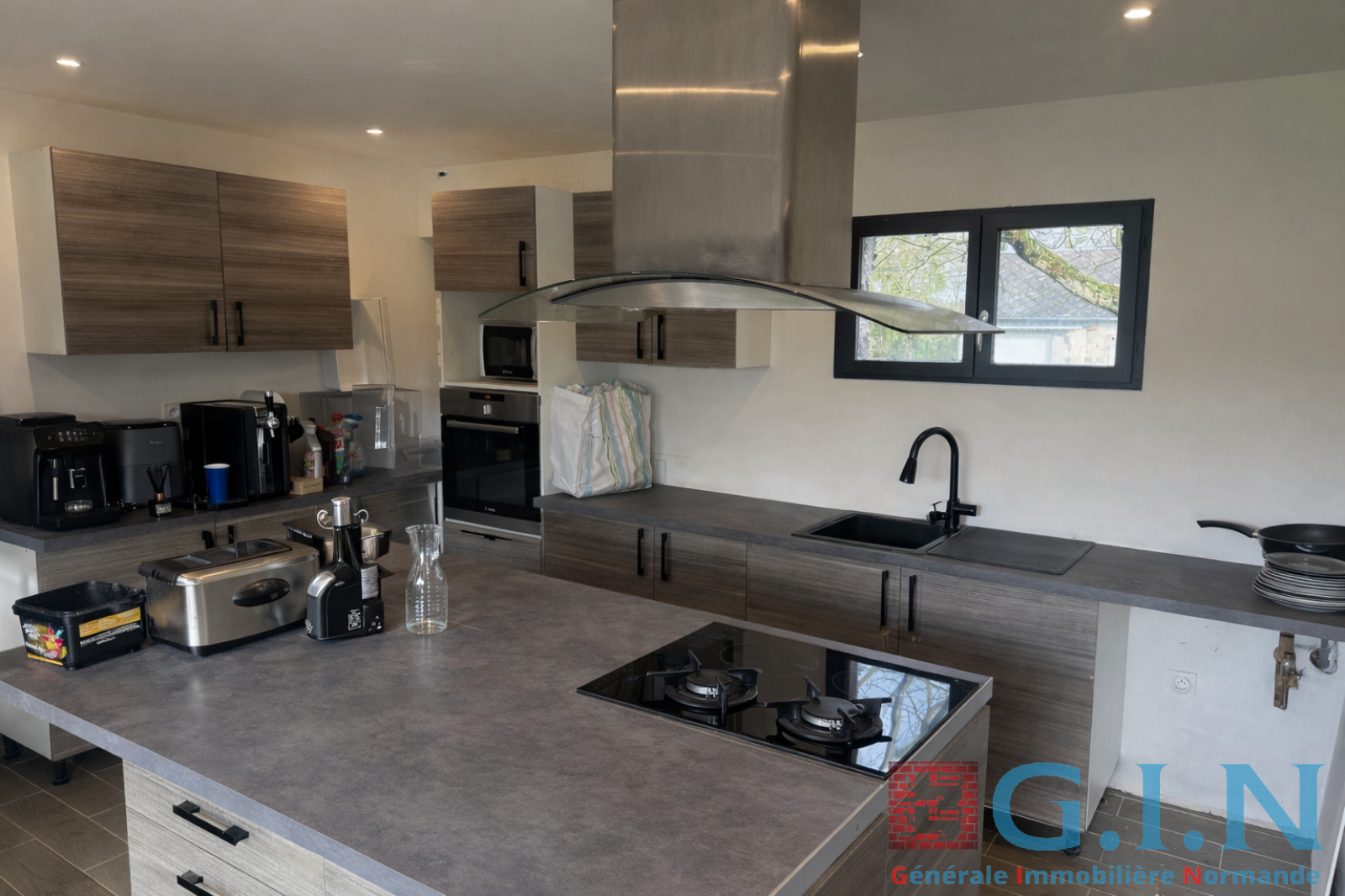 GIN vous propose à la vente cette maison de 130m² édifié sur un terrain de 3500m², elle se compose d'une entrée avec une devanture en chên qui lui confère du caractère, donnant sur une cuisine aménagée avec son ilot central,