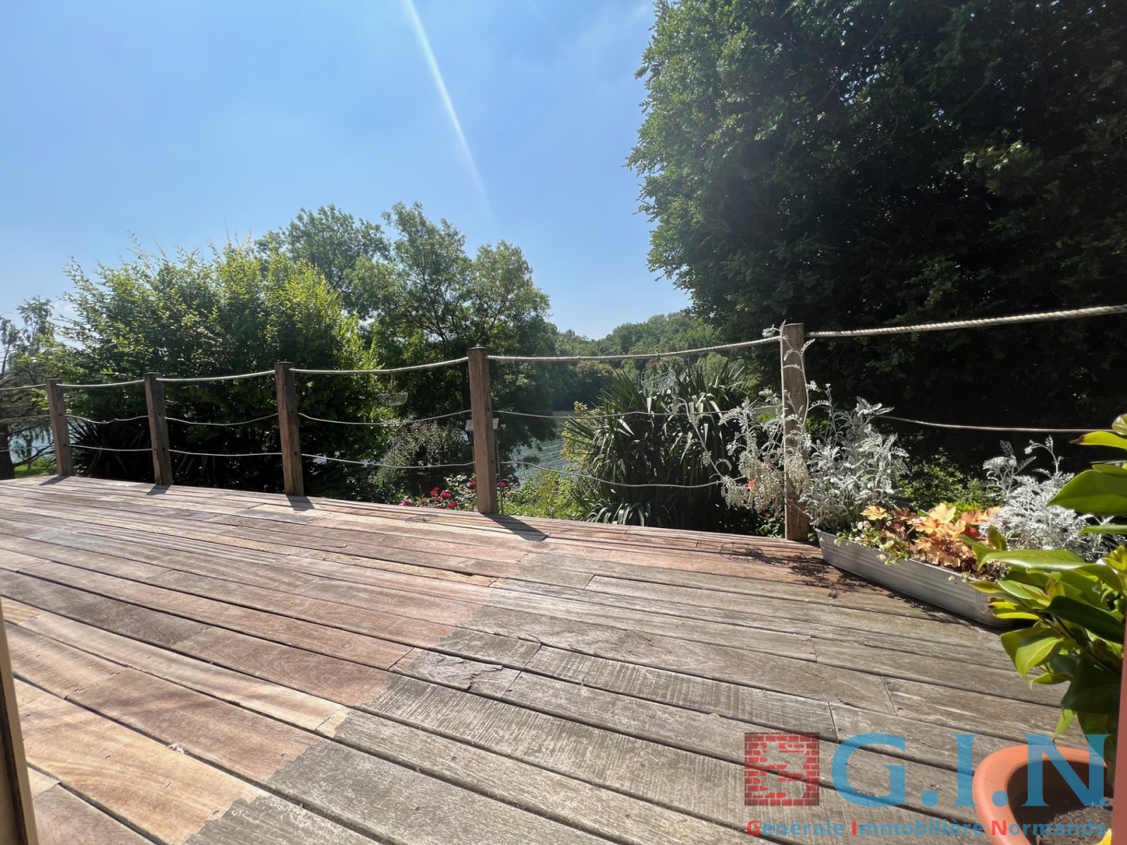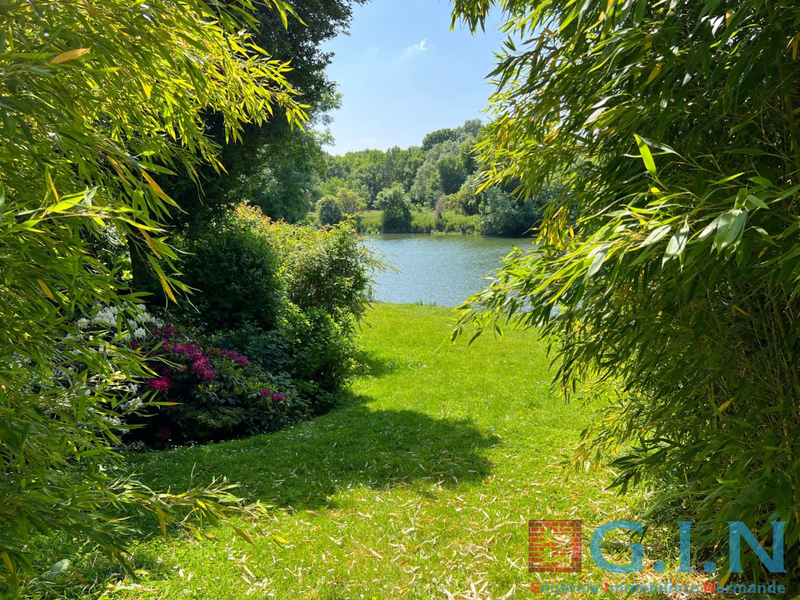 Joli jardin paysager d'une superficie de 1454m² avec accès direct sur la Seine (ponton privatif pour amarage de plusieurs bateaux)