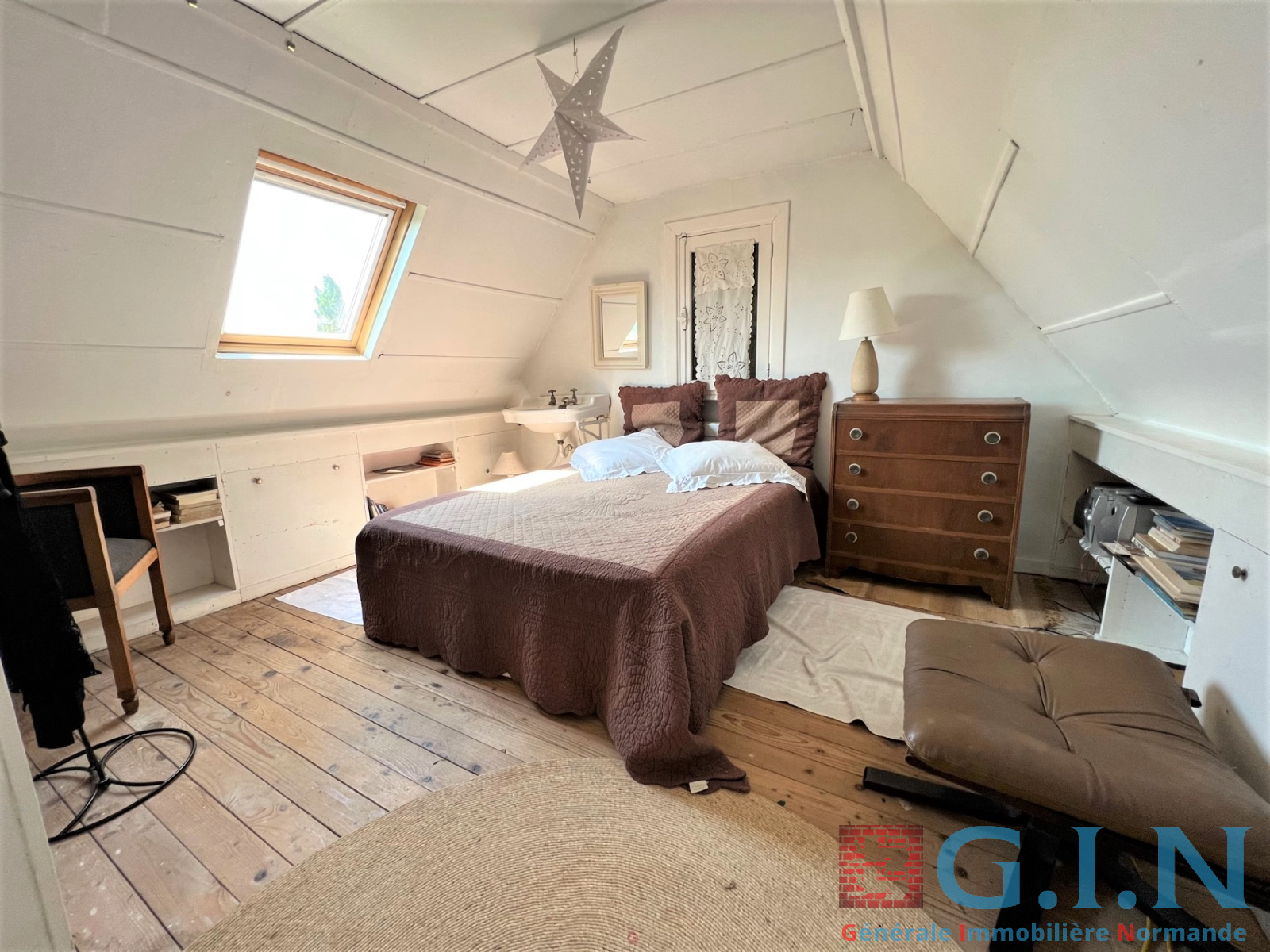 -2ème étage : grande pièce à usage de salle de jeux (chambre possible), chambre avec coin toilette (lavabo)