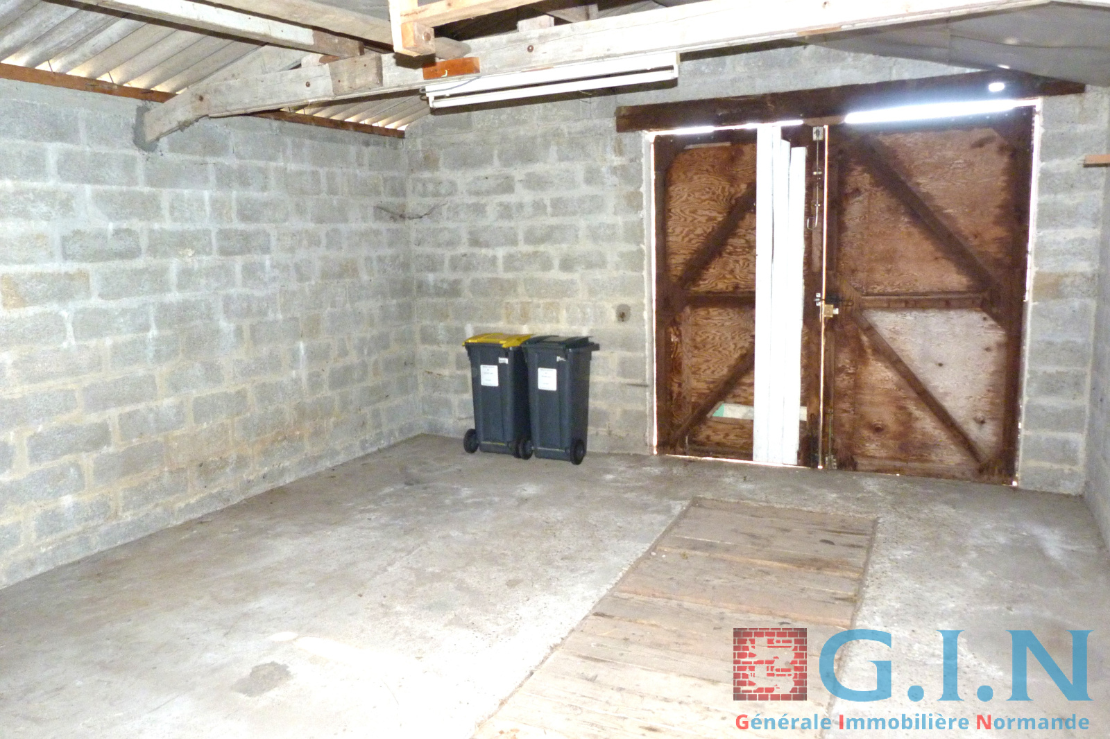 Garage extérieur de 28 m² une à deux voitures, hauteur 2.50 m, avec dalle béton au sol, fosse-vidange