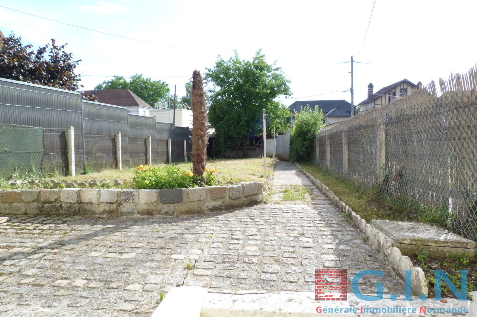 Sur 240 m² de terrain plat, terrasse en pavée de rue, abri bois.