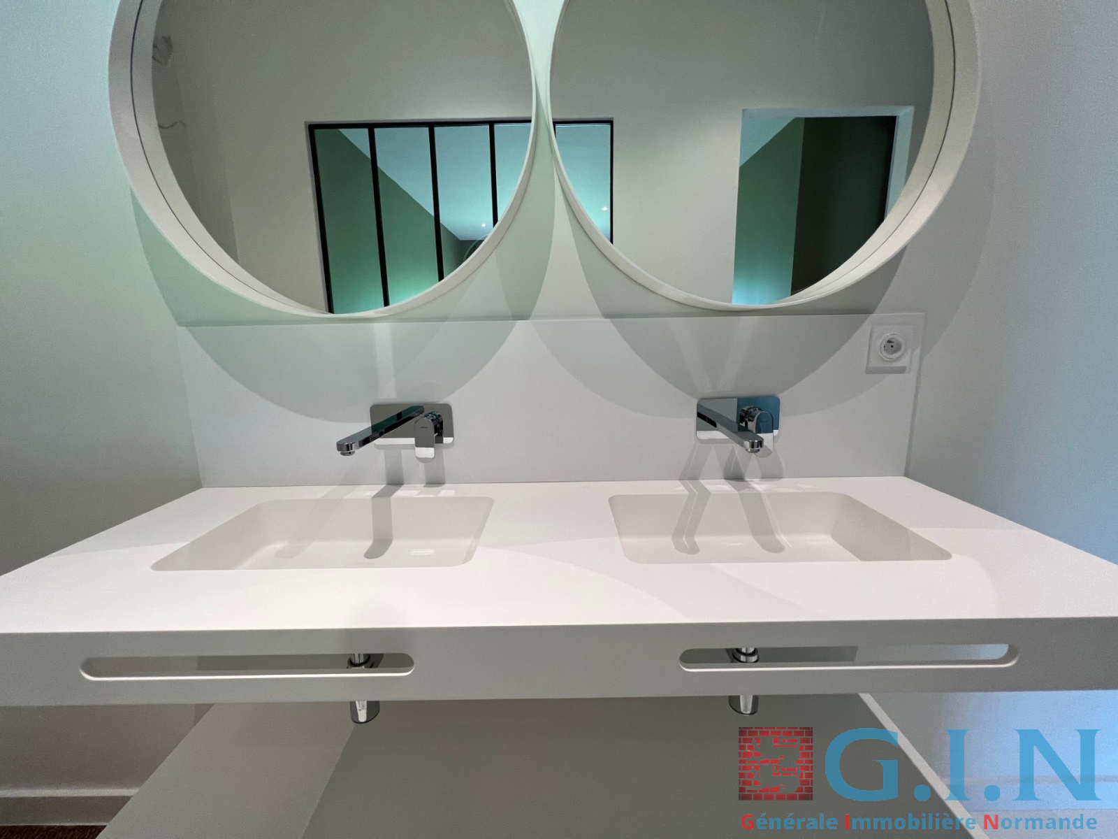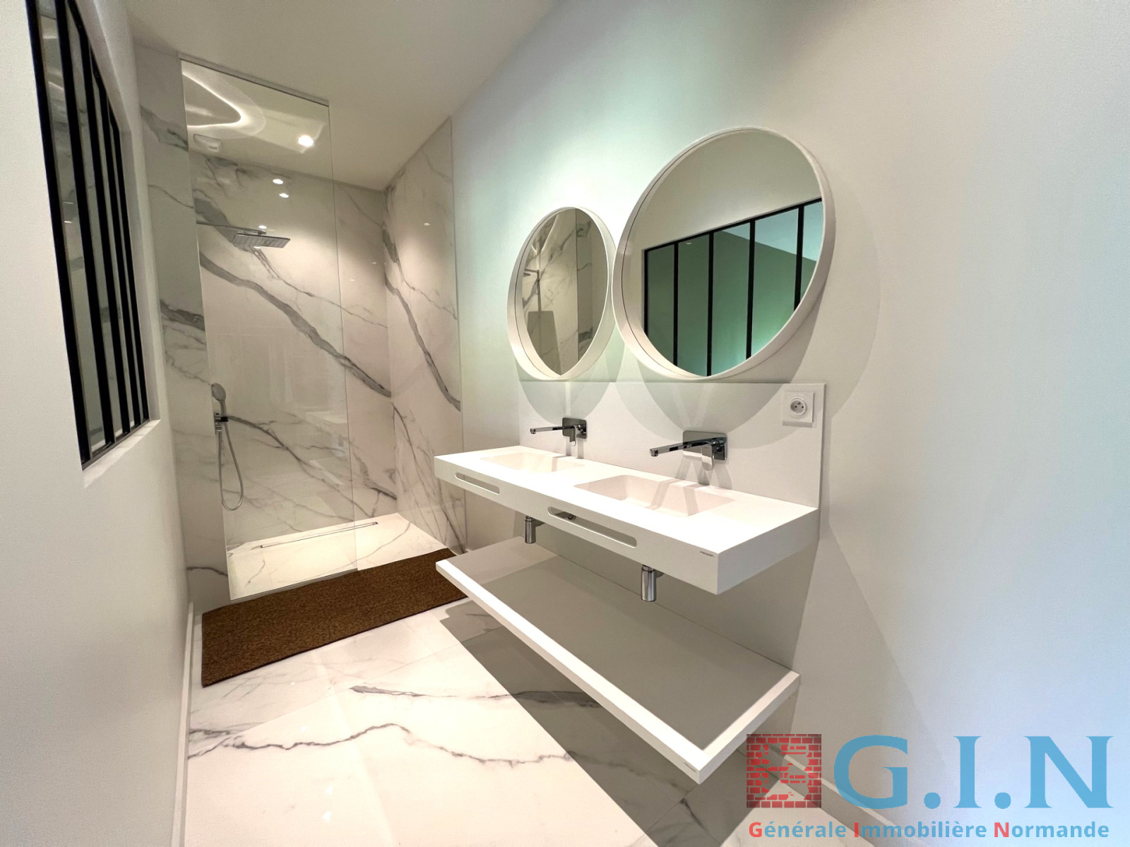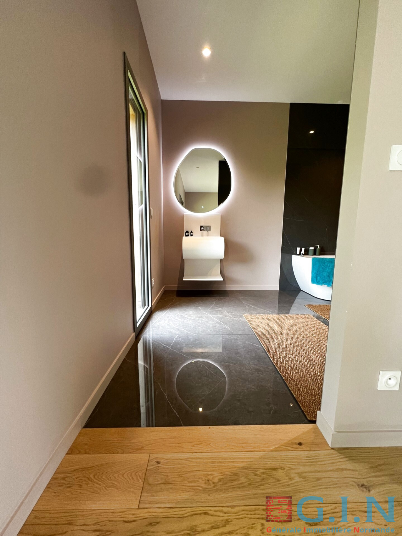 Cette propriété a fait l'objet d'un aménagement avec des matériaux de qualité et de grandes marques (carrelage Porcelanosa, habillage des salles de bains en marbre, sol en bois massif, portes intérieures Italiennes marque "Garofoli" hauteur 2.70ml, chauffage par plancher chauffant type Pompe à chaleur marque "Panasonic", hauteur sous plafond 2,92ml)