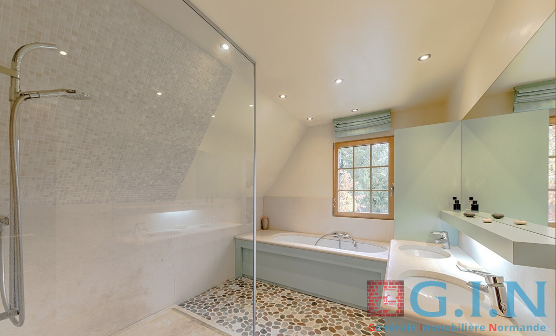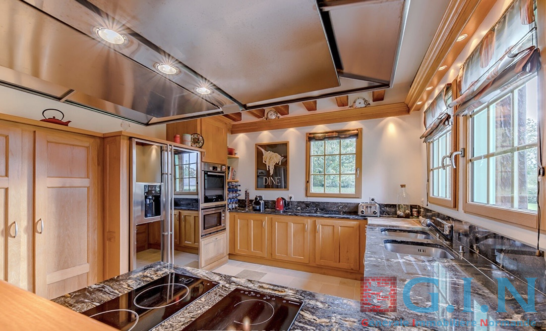 Nichée sur une parcelle arborée de 4 000 m², cette maison normande au style honnet séduit par son élégance intemporelle et ses prestations haut de gamme.