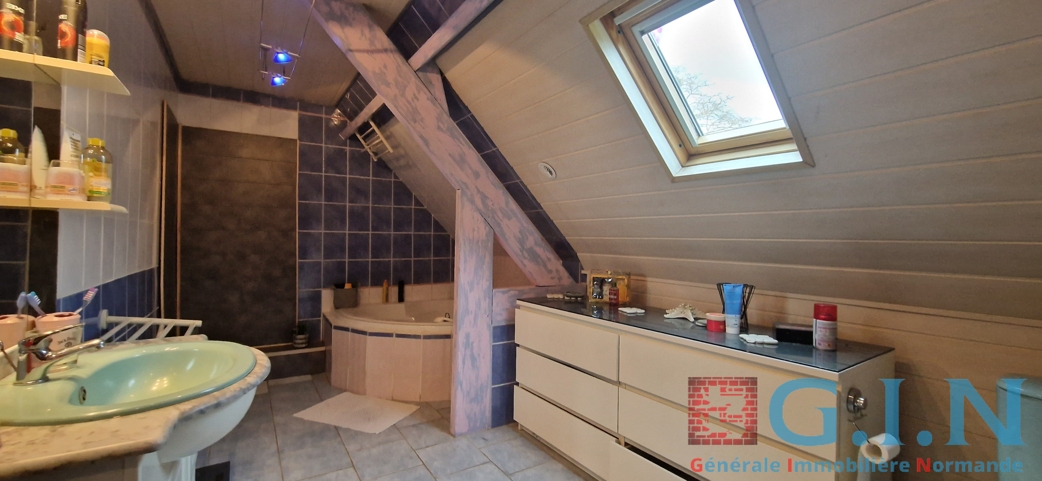 GIN vous propose à la vente ce pavillon 118m² avec sous sol complet, entrée, salle salon avec cheminée, cuisine équipée, 1 chambre, WC, au 1er 3 chambres, 1 salle de bains avec WC, terrasse sur 2431m² de terrain.