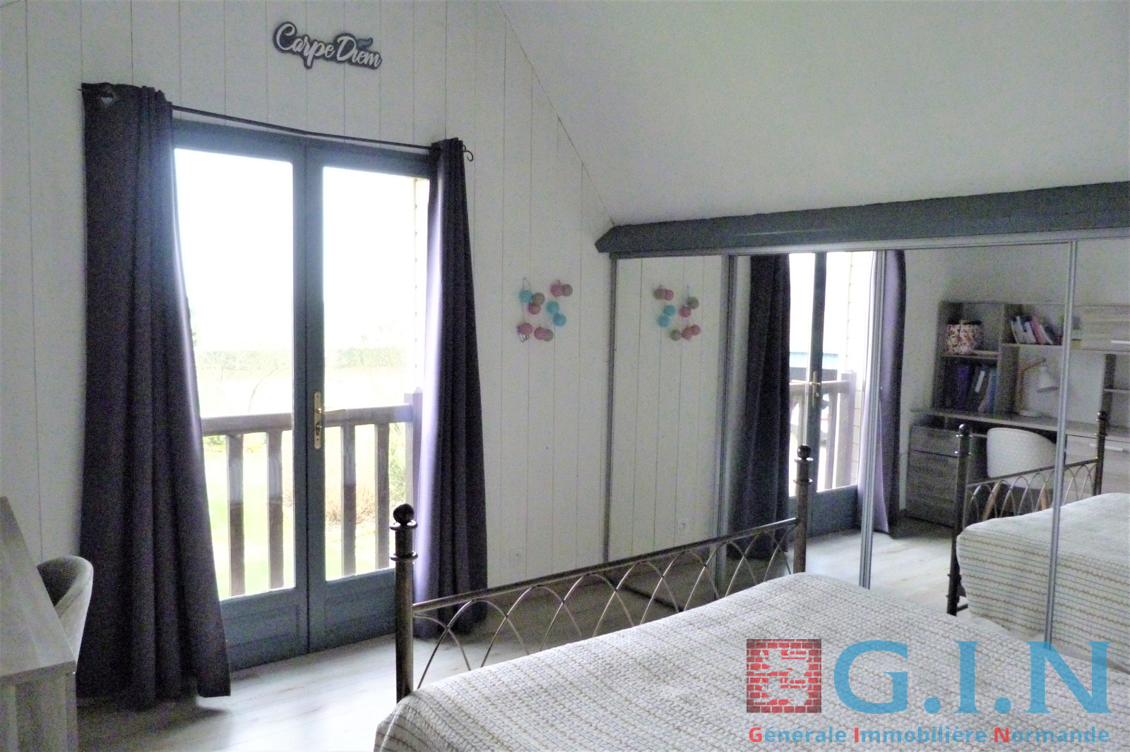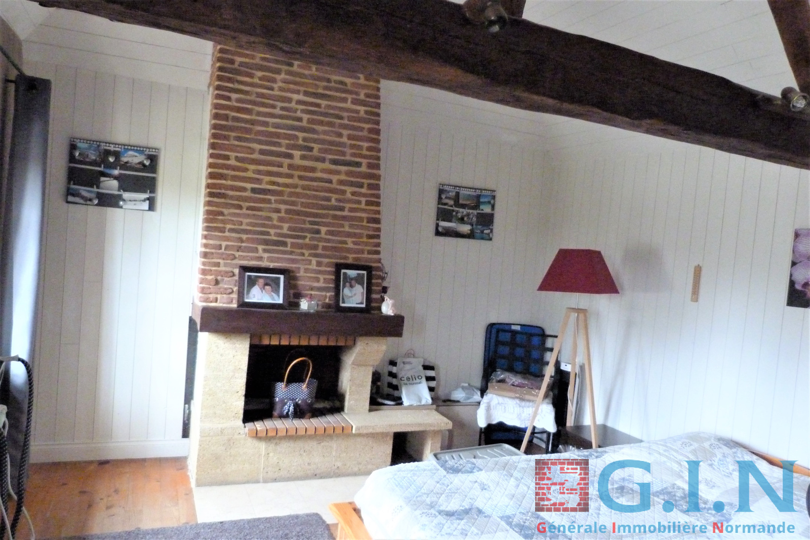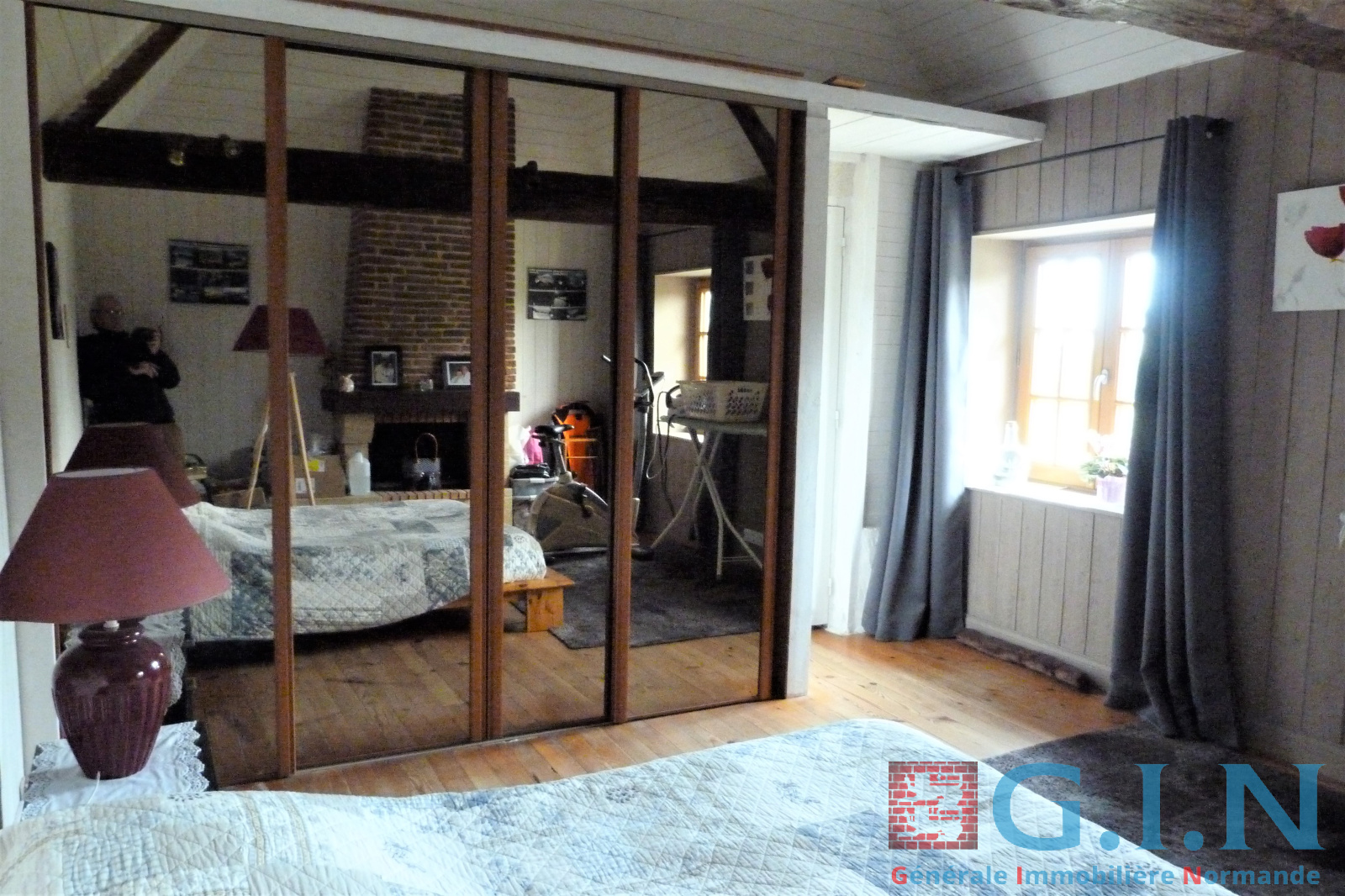 - Une chambre rez-de-chaussée de 18m² avec cheminée, dressing avec miroir, plafond cathédrale et parquet massif.