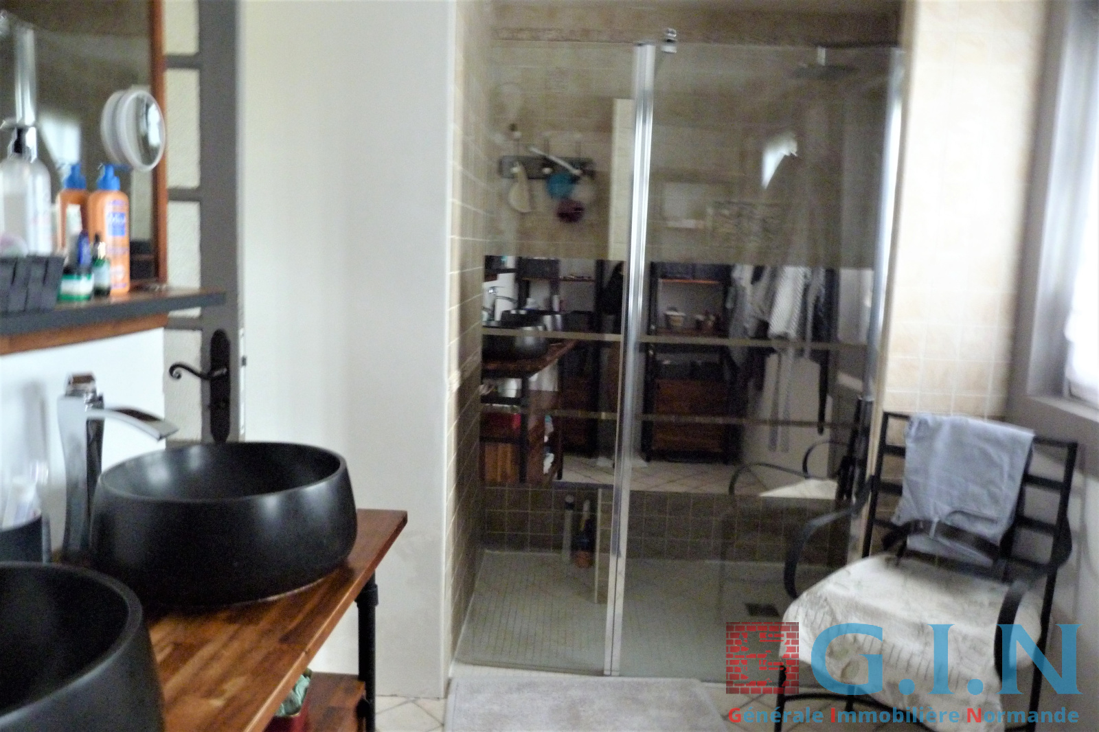 - Salle d'eau aménagée de 9m² avec douche à l'italienne hydrojets, meubles avec deux vasques.