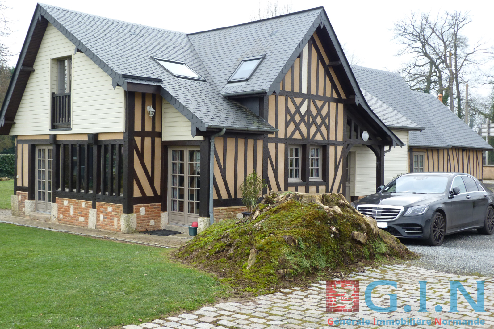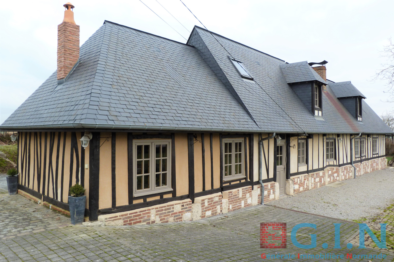 Maison ancienne indépendante de 173 m² habitable à caractère normand avec extension, couverte d'ardoises naturelles, vivable de plain-pied, très soignée et très lumineuse, alliant le charme de l'ancien et du contemporain.