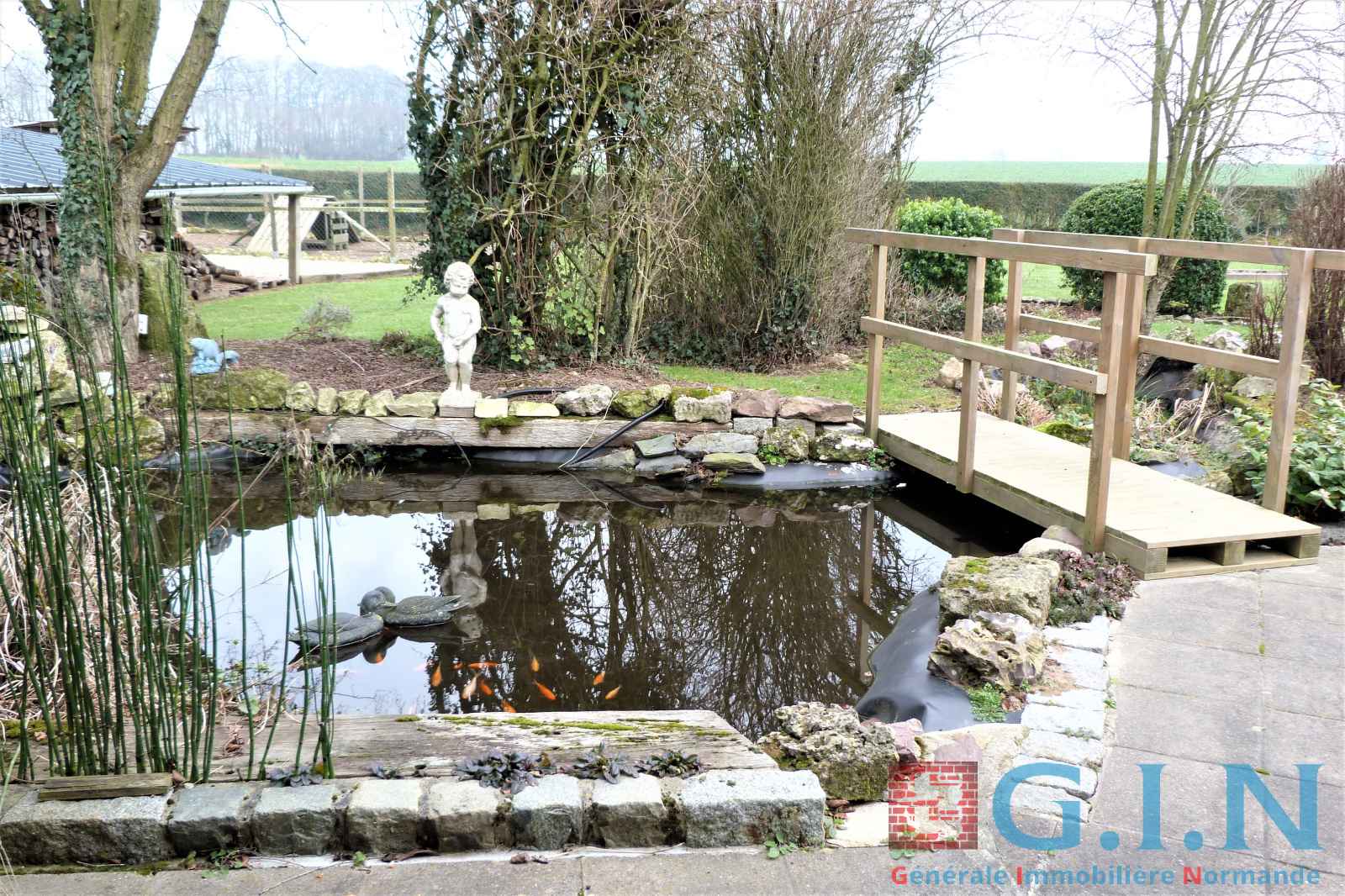 - Mare à poissons avec petit pont.
