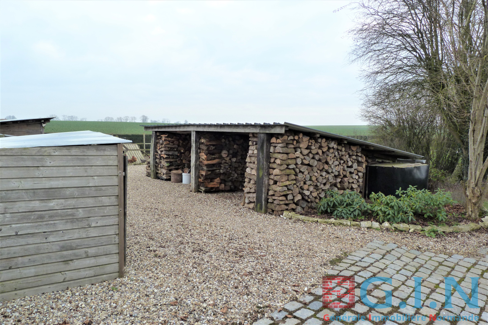 - Double abri de jardin, serre, 2 bûchers à bois pour stocker 15 à 20 stères.