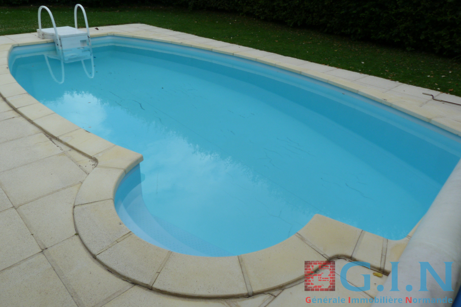 Piscine 30 m² chauffée par pompe à chaleur avec terrasse pierre