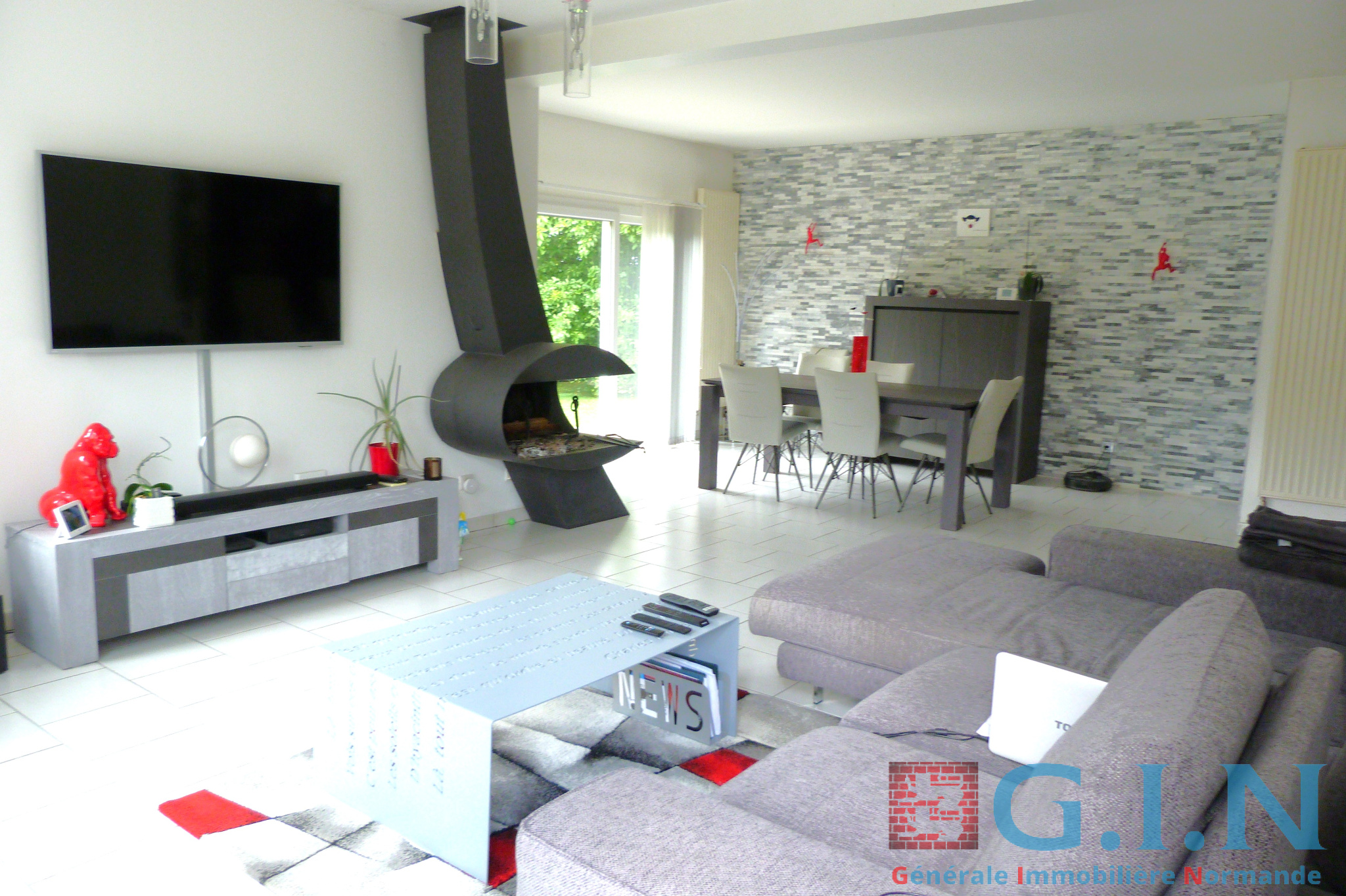 EXCLUSIVITÉ ROUMARE, (15 MNS ROUEN OUEST), Quartier résidentiel, au calme, prox centre avec commerces de proximité, très belle propriété contemporaine d'architecte (année 2005), d'une surface habitable de 132 m² soit 155 m² au sol avec de belles prestations, couverte d'ardoises naturelles crochetées - Comprenant :