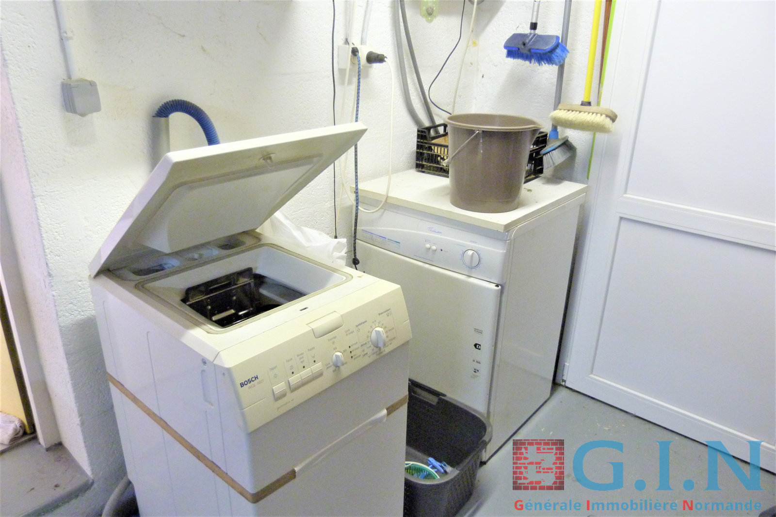 Garage avec lingerie de 28 m² avec grenier au-dessus accessible par escalier pour rangement