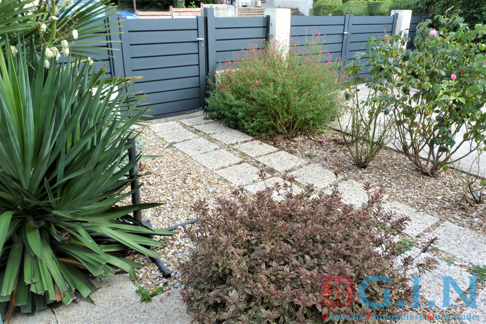 Clôture d'entrée avec portillon et portail alu gris anthracite (3ans)
