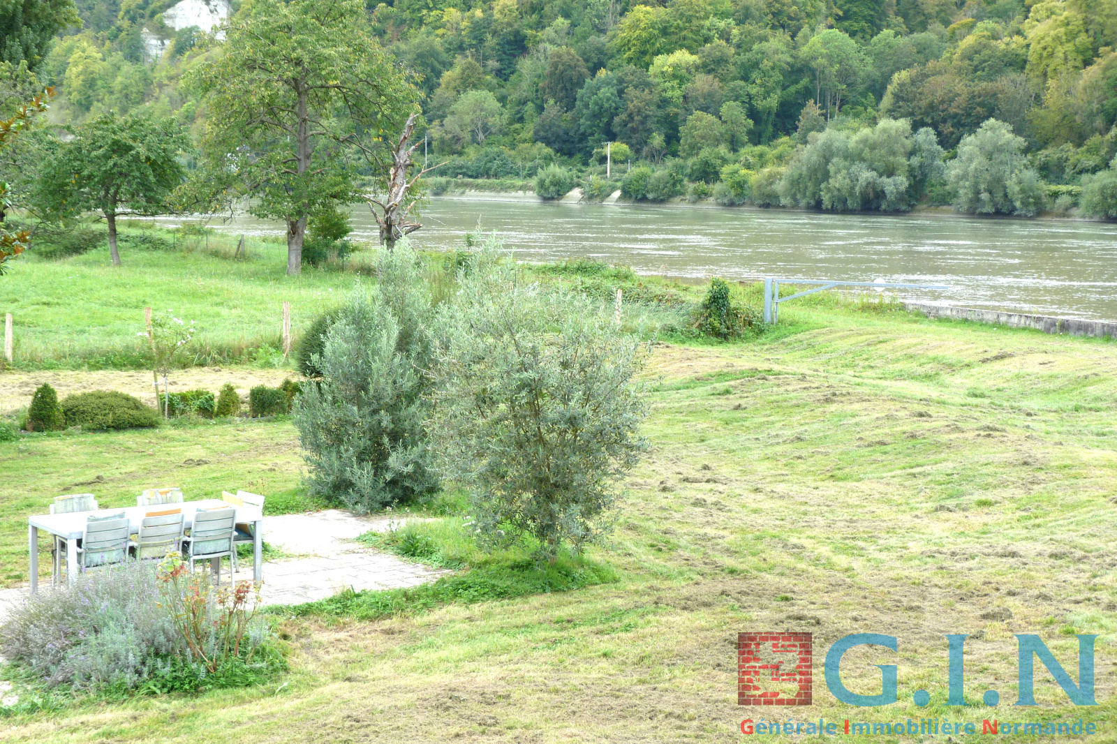 Sur un terrain de 6.499 m² plat, bordé par la Seine et planté (olivier, palmier, magnolia, eucaliptus)