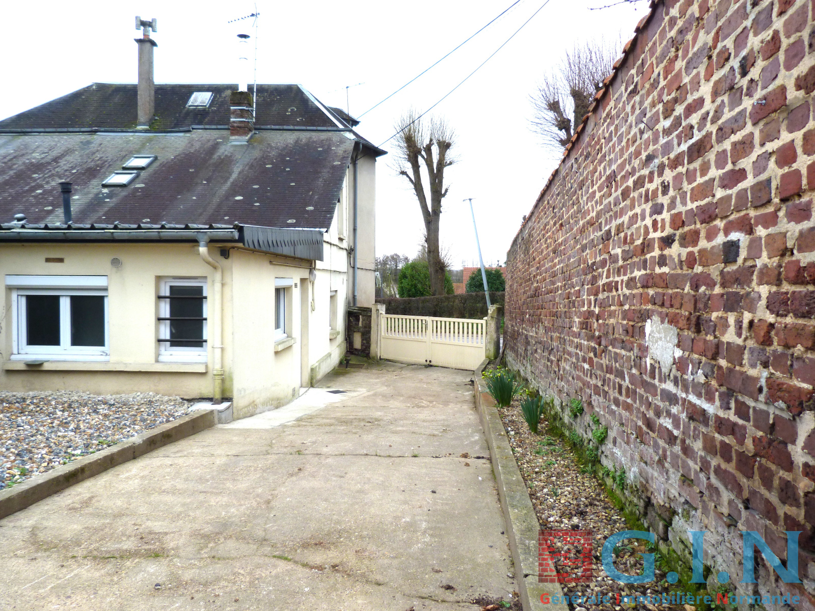Garage une voiture avec dalle béton au sol + possibilité de rentrer 3 voitures dans la cour.